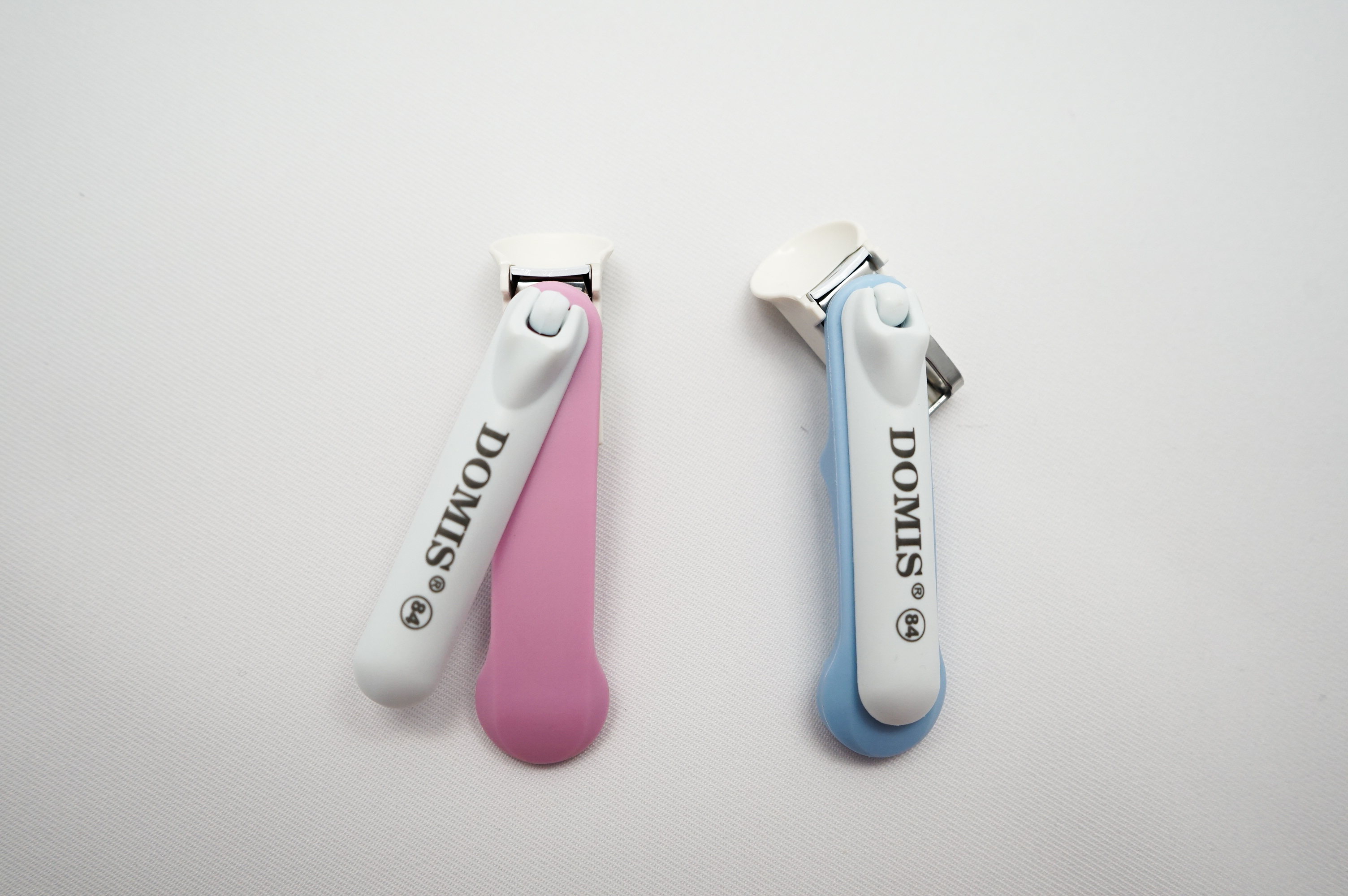 Bezpieczny obcinacz dla dzieci z ruchomą głowicą. Dostępny w dwóch kolorach: niebieski oraz różowy.