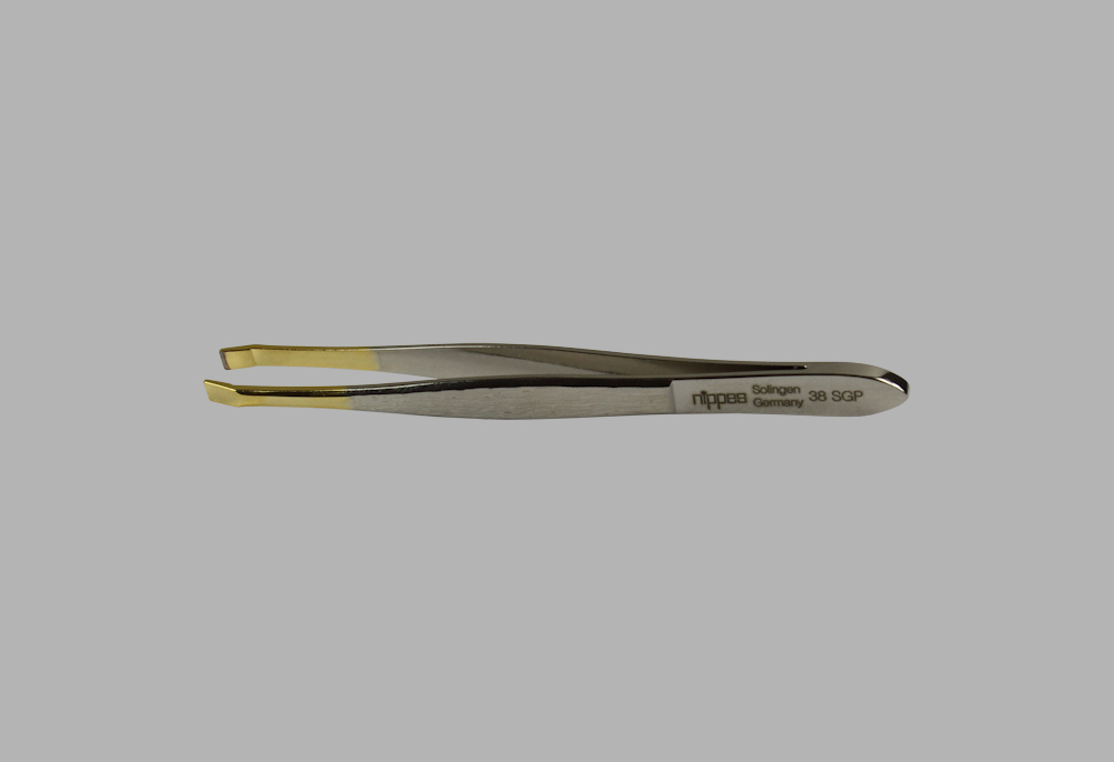 Pęseta chirurgiczna z prostą pozłacaną końcówką.